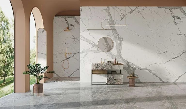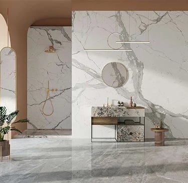 Explore The Wall Therapy's collection of large format sintered stone tiles and luxurious PVC marble sheets, perfect for creating stunning and easy-to-maintain feature walls and backsplashes.